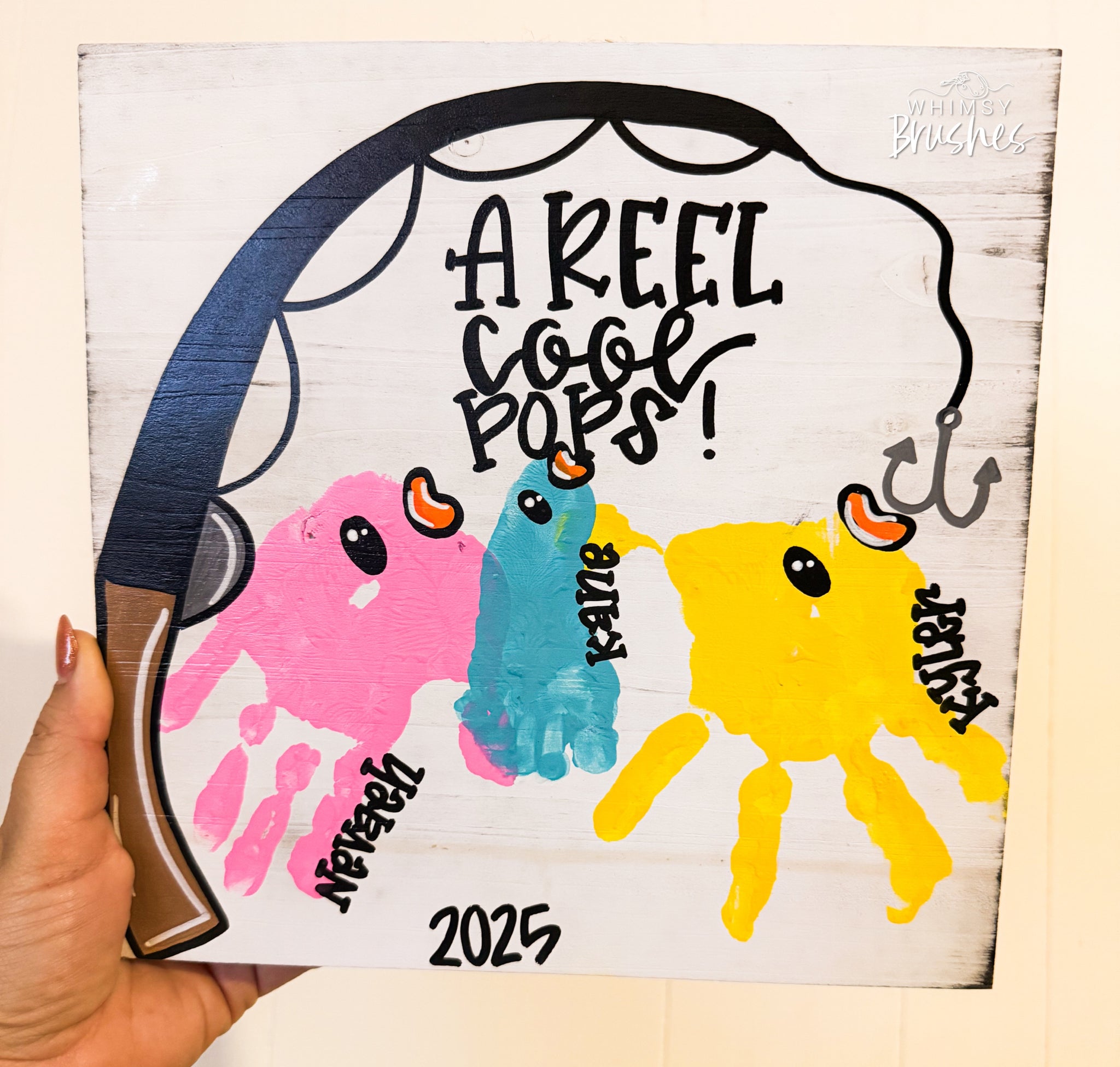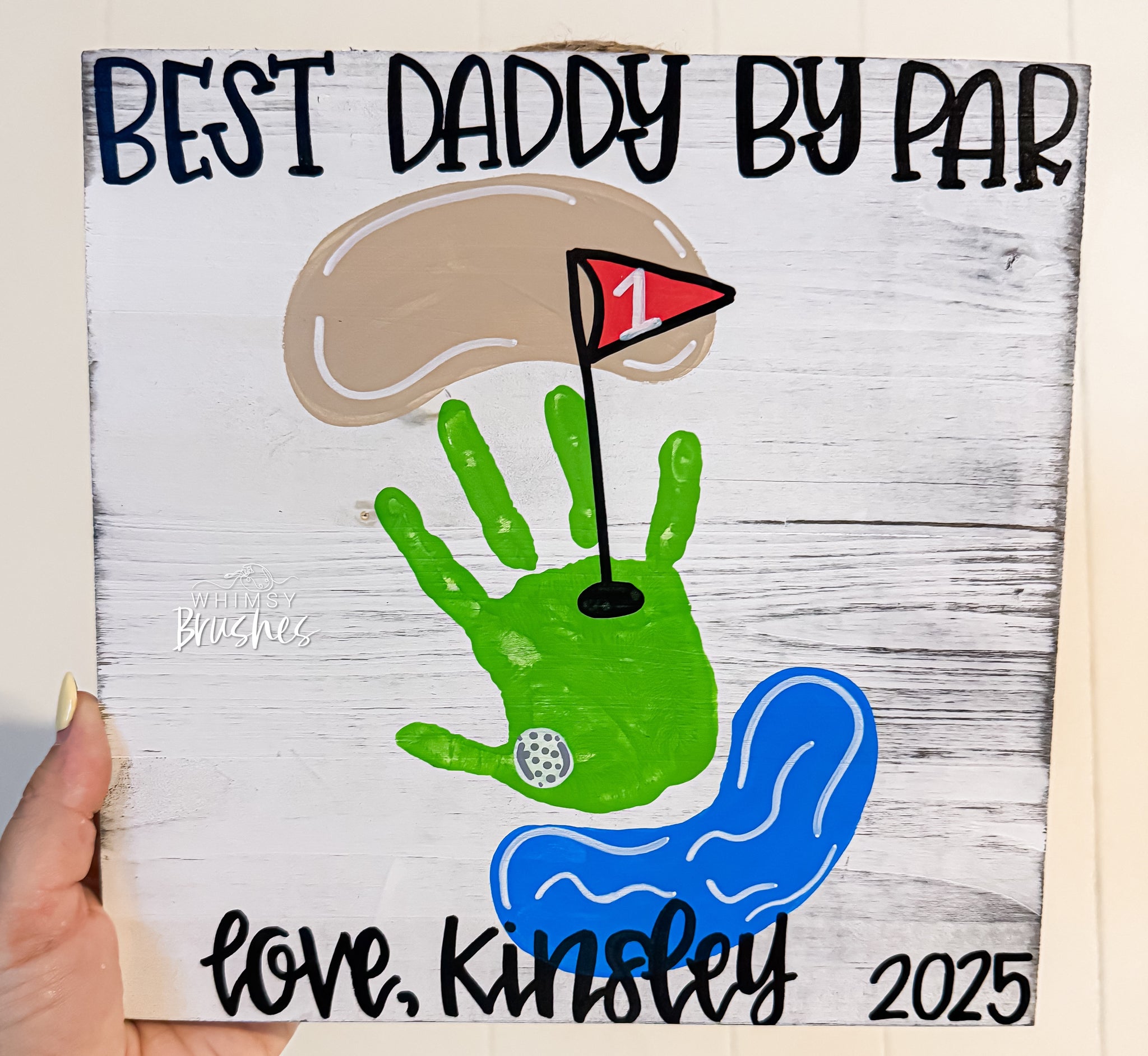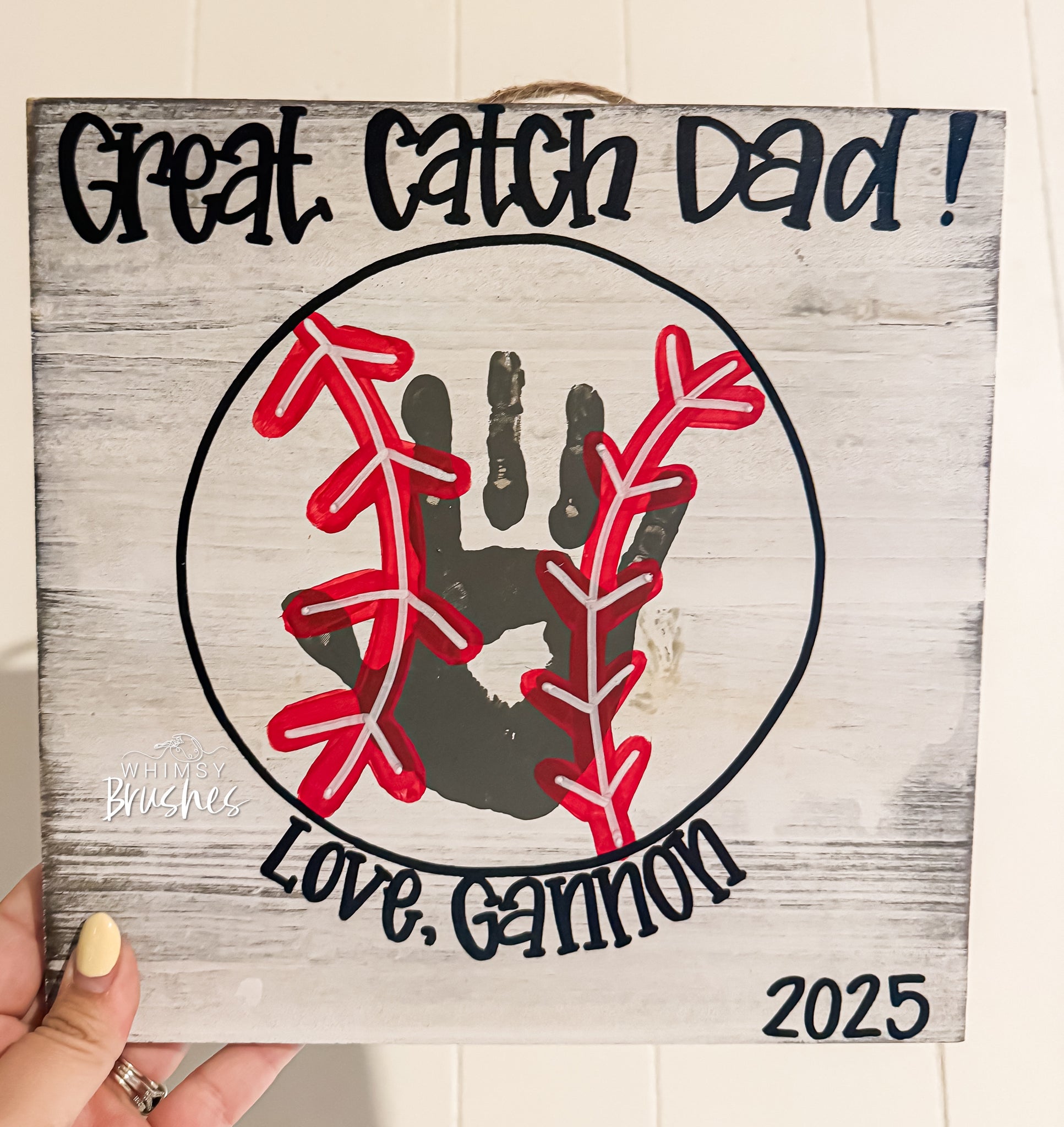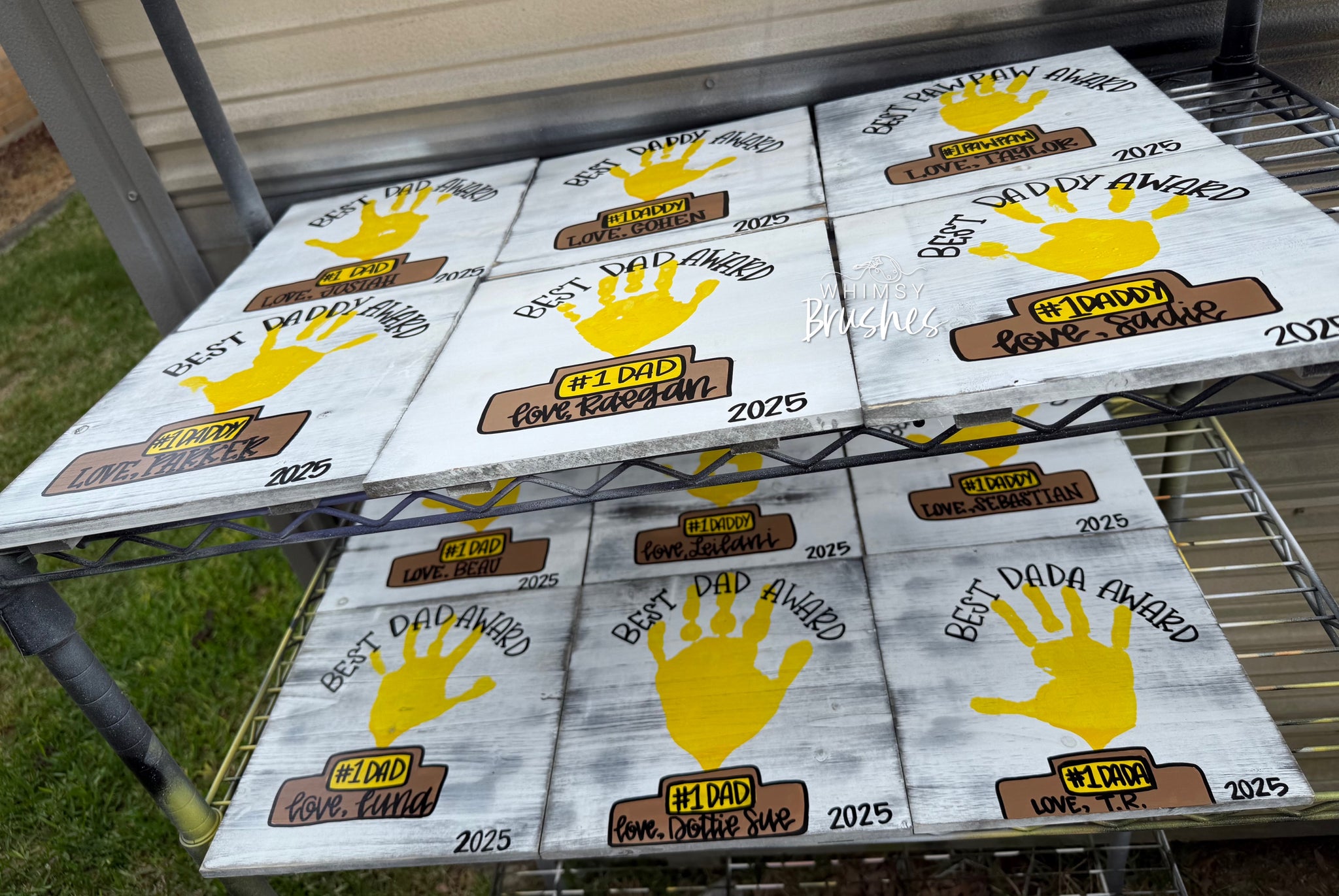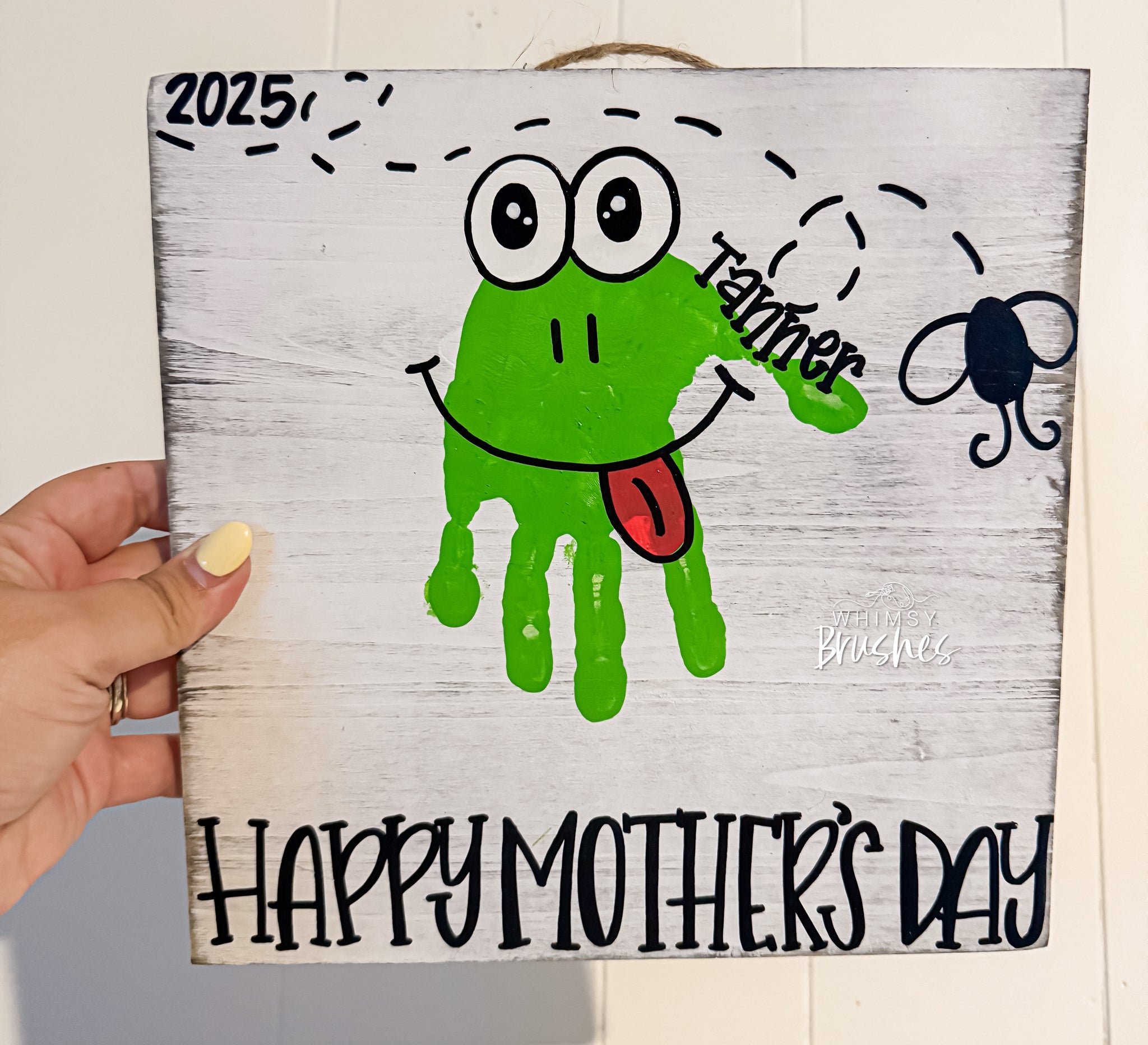 10x10 distressed wooden plaque can be propped on a shelf, hung with the twine hanger, OR sawtooth picture hanger. Multiple handprints/footprints can be added to 1 plaque.