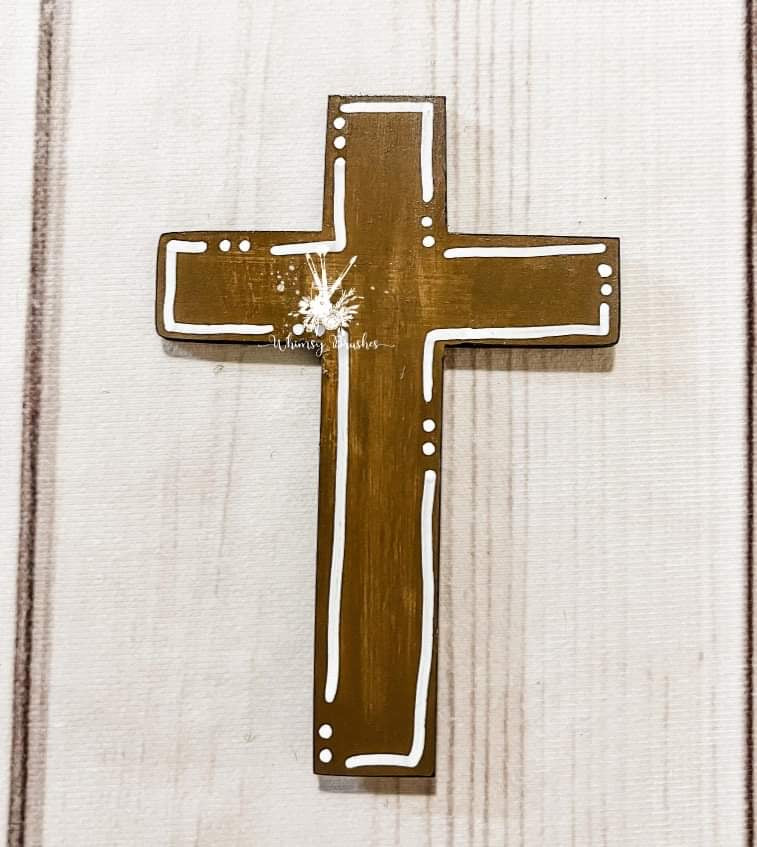 This Cross is a handpainted wooden 6” interchangeable attachment. These attach to an interchangeable base with Velcro. All attachments are double coated with a sealant for protection from weather elements, this does NOT make them weather resistant. Please note if you are experiencing windy weather, I highly recommend removing the attachment for that time period. Due to each piece being hand painted and an original, designs can vary in precise details, but overall the same design.