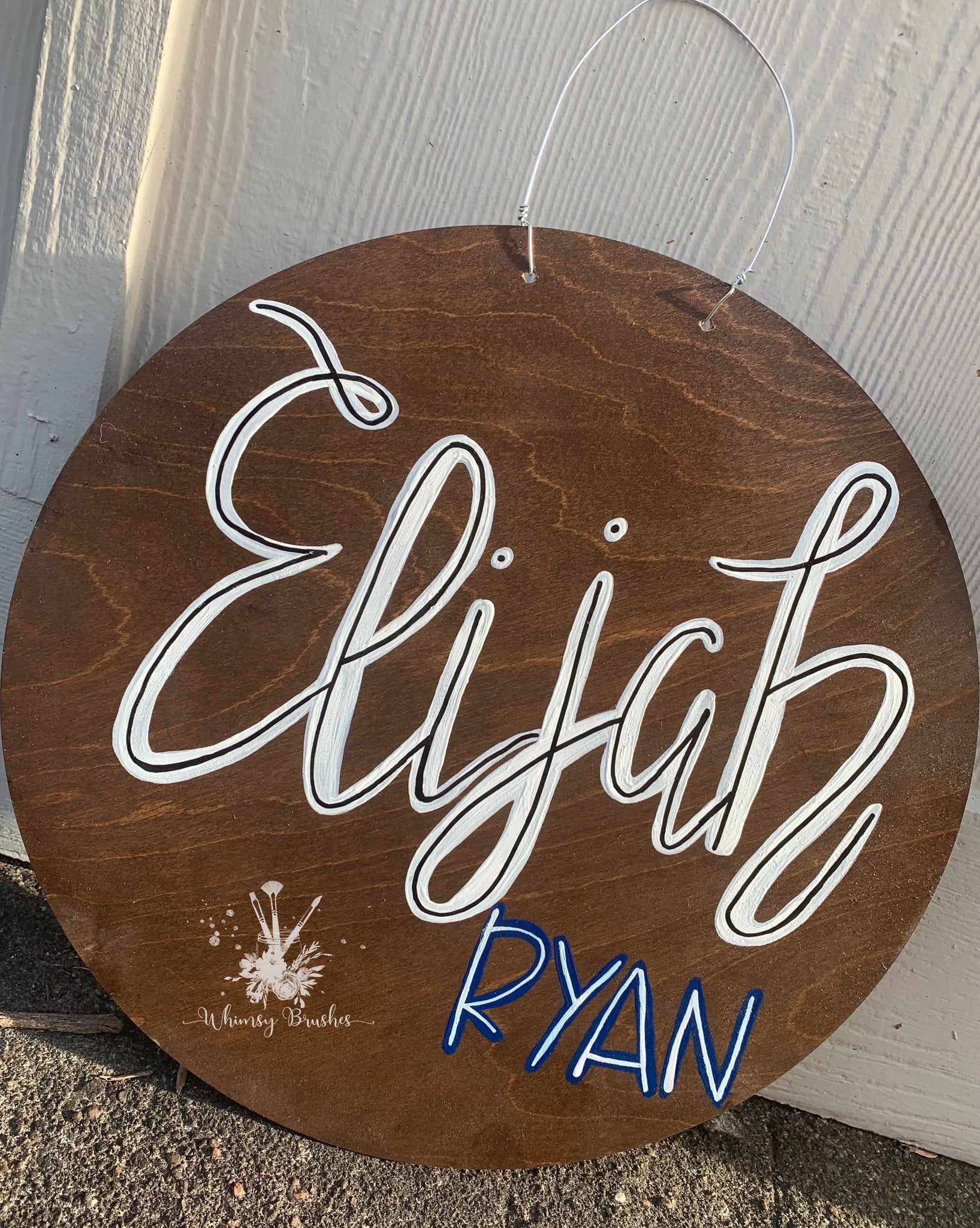 This wooden hand painted Custom Round Baby Name Doorhanger is such an adorable hospital door hanger and makes a wonderful baby shower gift or a great addition to any nursery. This Doorhanger comes in two sizes: 15” and 19 and includes a 5” stat board. Please make sure correct size of round is selected. This can be customized with any color scheme. Please include baby’s name and any detail in notes section at checkout. All signs are double coated with a sealant for protection from weather elements. If a bow is shown, materials may vary due to stock. Due to each piece being hand painted and an original, designs can vary in precise details, but overall the same design.