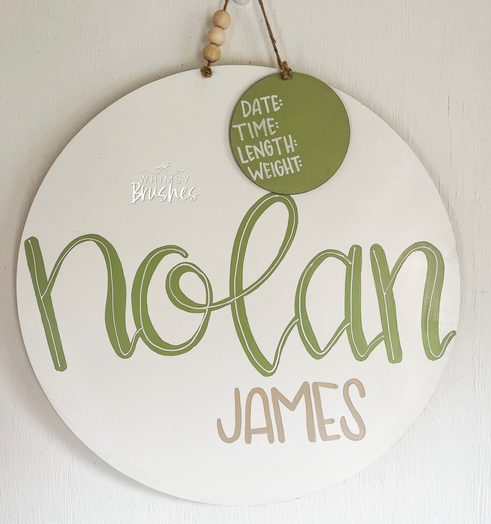 This wooden hand painted Custom Thick Baby Name Round Doorhanger is such an adorable hospital door hanger and makes a wonderful baby shower gift or a great addition to any nursery. This Doorhanger comes in two sizes: 15” and 19 and includes a 5” stat board. Please make sure correct size of round is selected. This can be customized with any color scheme. Please include baby’s name and any detail in notes section at checkout. All signs are double coated with a sealant for protection from weather elements. If a bow is shown, materials may vary due to stock. Due to each piece being hand painted and an original, designs can vary in precise details, but overall the same design.