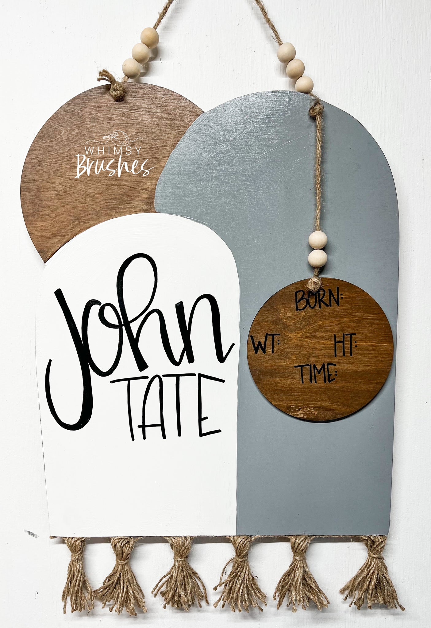 This wooden hand painted Modern Boho Baby Doorhanger is such an adorable hospital door hanger and makes a wonderful baby shower gift or a great addition to any nursery. This Doorhanger is 22” tall and 17” wide and includes a 5” stat board. This can be customized with any color scheme. Please include baby’s name and any detail in notes section at checkout. All signs are double coated with a sealant for protection from weather elements. If a bow is shown, materials may vary due to stock. Due to each piece being hand painted and an original, designs can vary in precise details, but overall the same design.